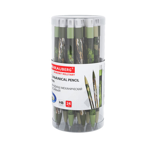 Карандаш механический цанговый 2 мм, BRAUBERG PRINT MILITARY, HB, встроенная точилка, корпус ассорти, 181962