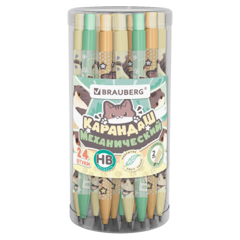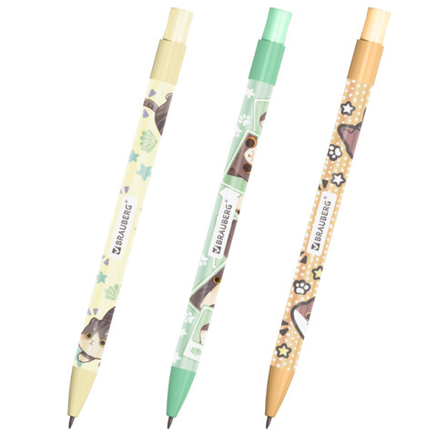 Механический карандаш BRAUBERG, представленный в трёх вариантах дизайна корпуса с милыми котами, идеально подойдет для ведения заметок во время работы и учебы.