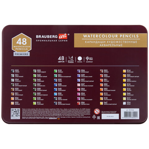 Карандаши художественные цветные акварельные, 48 цветов, 4 мм, металлический кейс, BRAUBERG ART PREMIERE, 181924