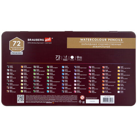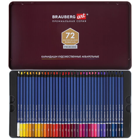 Карандаши художественные цветные акварельные, 72 цвета, 4 мм, металлический кейс, BRAUBERG ART PREMIERE, 181925