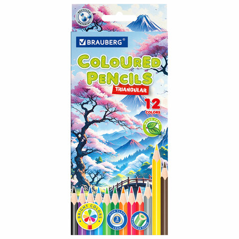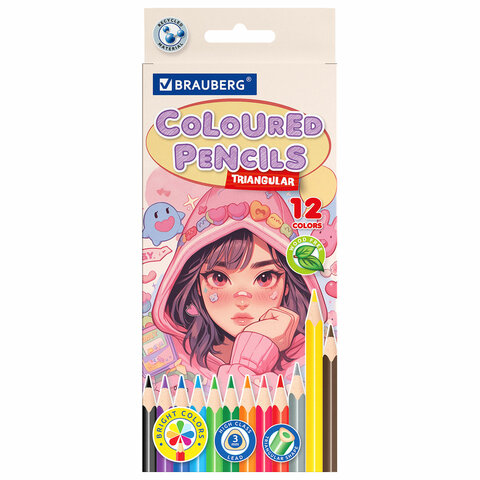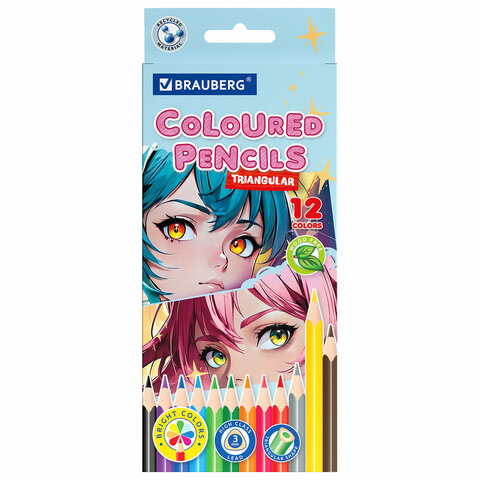 Карандаши цветные "АССОРТИ 8 ДИЗАЙНОВ 7-14 лет", 12 цветов, трехгранные, BRAUBERG, 182056