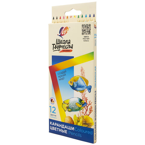 Карандаши цветные ЛУЧ "Школа Творчества", 12 цветов, трёхгранные, натуральное дерево, 30С 1806-08