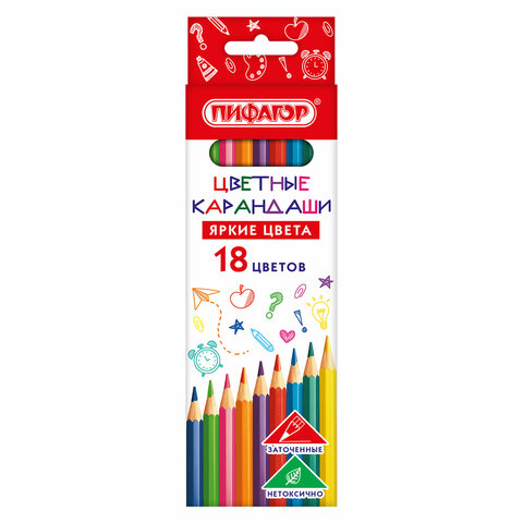 Карандаши цветные ПИФАГОР ЭКО "КЛАССИК", 18 цветов, шестигранные, 182049