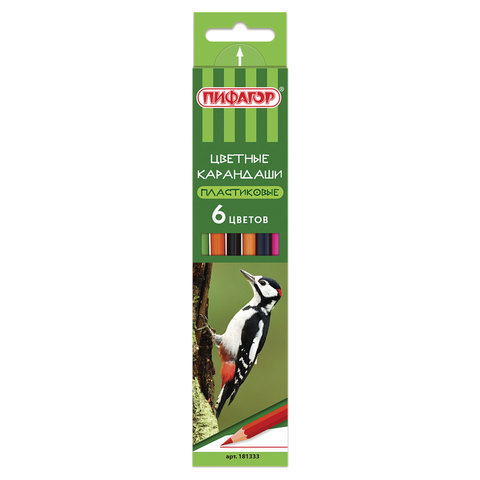 Карандаши цветные ПИФАГОР "ЛЕСНЫЕ ЖИТЕЛИ", 6 цветов, шестигранные, 181333
