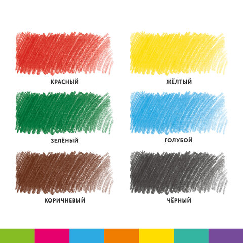 Карандаши цветные утолщенные BRAUBERG KIDS, 6 цветов, шестигранные, грифель 5 мм, натуральное дерево, 181877