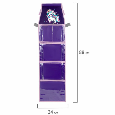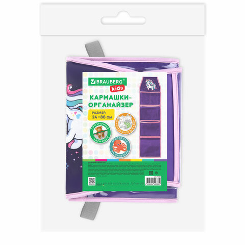 Кармашки-органайзер в шкафчик для детского сада BRAUBERG KIDS, крепление на липучке, наклейки-подсказки, 24х88 см, "Unipony", 273284