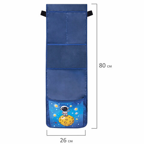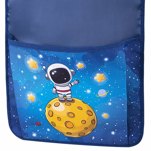 Кармашки-органайзер в шкафчик для детского сада ЮНЛАНДИЯ, с ПРОЗРАЧНЫМ КАРМАНОМ, увеличенный размер, 26х80 см, "Space dude", 271071