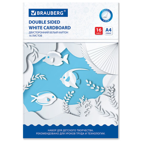 Картон белый А4 МЕЛОВАННЫЙ (белый оборот), 16 листов, в папке, BRAUBERG, 200х290 мм, 113561