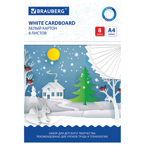 Набор белого картона BRAUBERG предназначен для творчества и хобби и может использоваться детьми с трехлетнего возраста. Картон рекомендован для уроков труда и технологии.