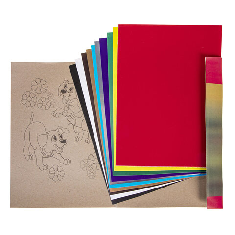 Картон цветной А4 МЕЛОВАННЫЙ, 10 листов 10 цветов, в папке, HATBER ECO, 195х290 мм, "Белый щенок", 043288, 10Кц4_03414
