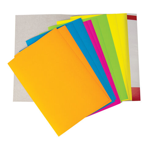 Картон цветной А4 МЕЛОВАННЫЙ (глянцевый), ФЛУОРЕСЦЕНТНЫЙ, 10 листов 5 цветов, в папке, BRAUBERG, 200х290 мм, "Лето", 129918