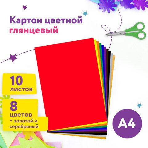 Картон цветной А4 МЕЛОВАННЫЙ ВОЛШЕБНЫЙ, 10 листов, 10 цветов, в папке, ЮНЛАНДИЯ, 200х290 мм, 113544