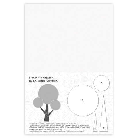 Набор цветного картона BRAUBERG предназначен для творчества и хобби и может использоваться детьми с трехлетнего возраста. Картон рекомендован для уроков труда и технологии. Творческая инструкция по созданию аппликации на обороте.