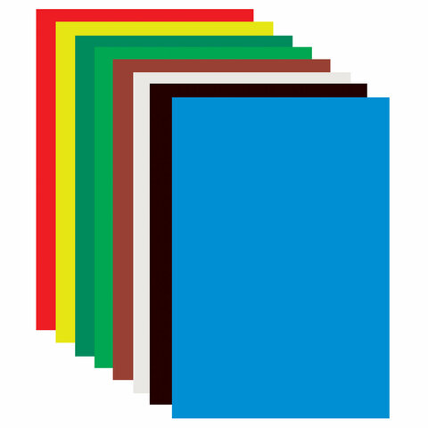 Картон цветной А4 немелованный (матовый), 16 листов 8 цветов, ПИФАГОР, 200х283 мм, 128010