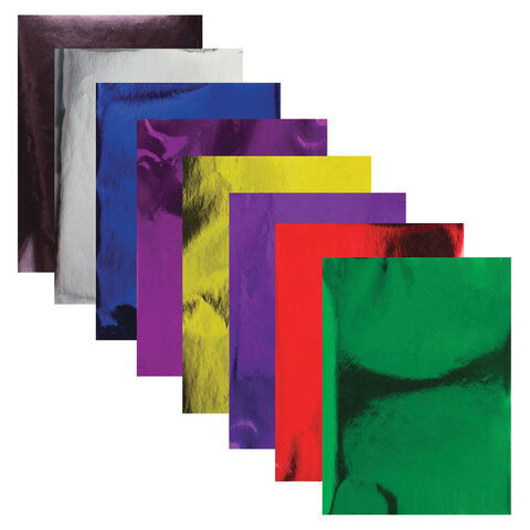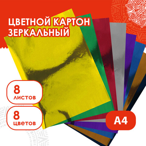 Картон цветной, А4, ЗЕРКАЛЬНЫЙ, 8 листов 8 цветов, 180 г/м2, ОСТРОВ СОКРОВИЩ, 210х297 мм, 129879