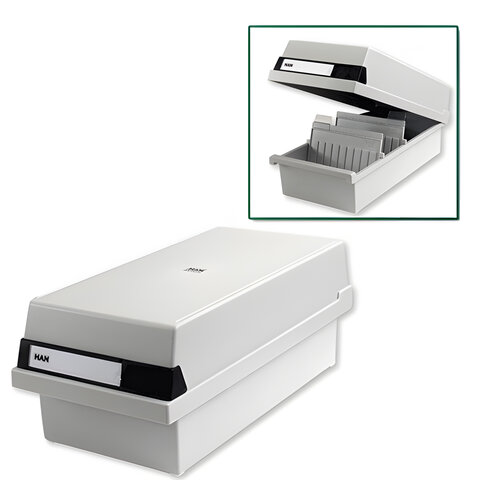 Картотека пластиковая ФОРМАТ А5 (210х148 мм) горизонтальная на 1300 карт, с крышкой, серая, HAN (Германия), HA955/11