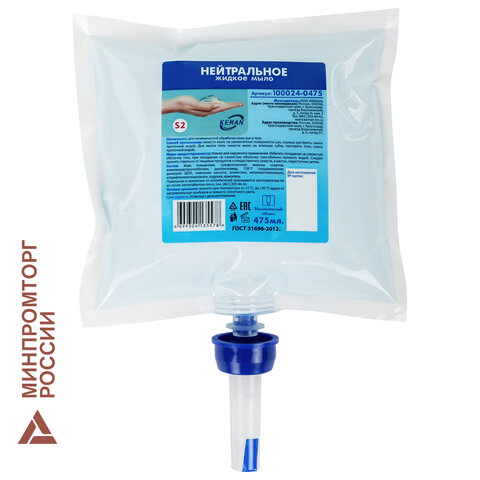 Картридж с жидким мылом одноразовый (Система S2) "Нейтральное", синее, 0,475 л, KEMAN, 100024-0475