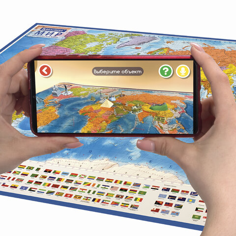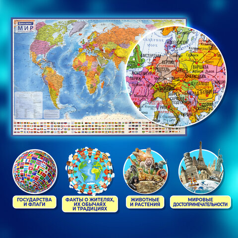 Карта мира политическая 101х70 см, 1:32М, с ламинацией, интерактивная, европодвес, BRAUBERG, 112381