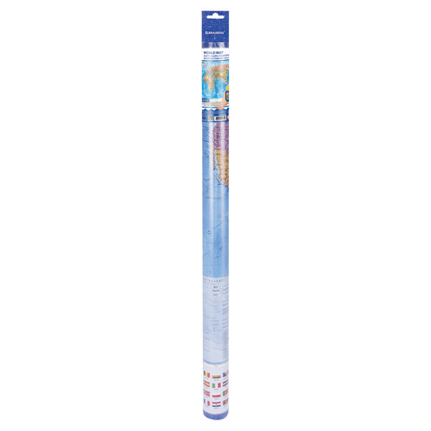 На политической карте мира BRAUBERG отображается современное политико-административное устройство мира: названия государств и их столицы, крупнейшие города и границы стран. Ниже расположены государственные флаги.