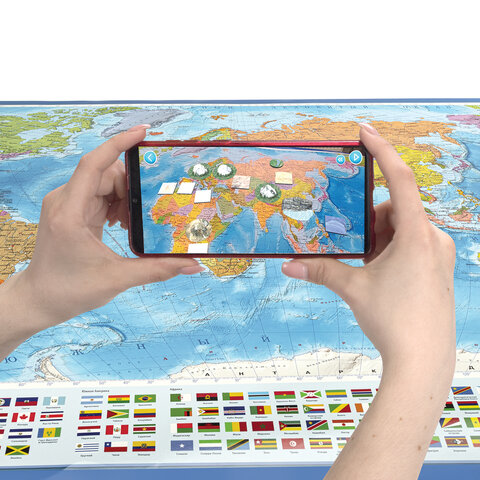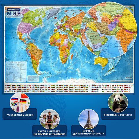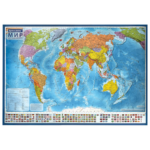 На политической карте мира BRAUBERG отображается современное политико-административное устройство мира: названия государств и их столицы, крупнейшие города и границы стран. Внизу карты расположены государственные флаги.