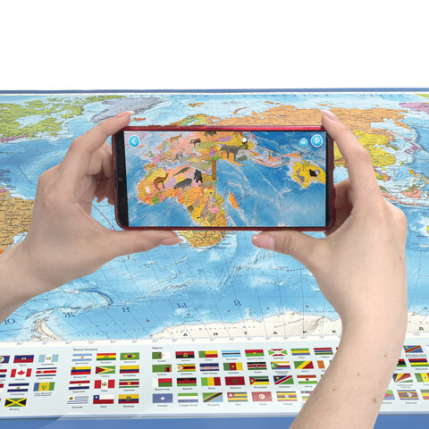 Карта мира политическая 157х107 см, 1:21,5М, с ламинацией, интерактивная, в тубусе, BRAUBERG, 112390
