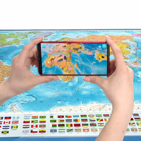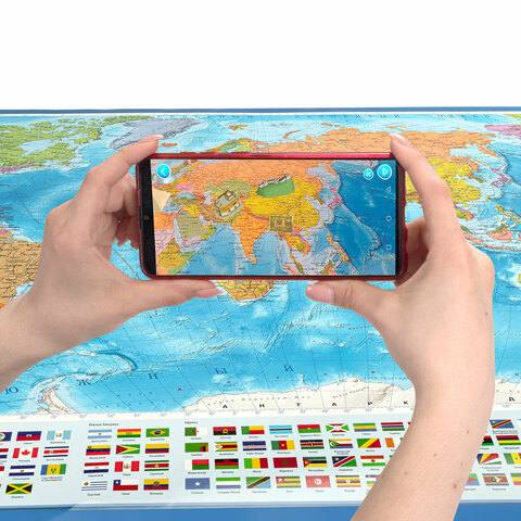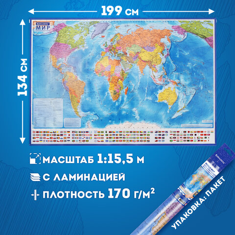 Карта мира политическая 199х134 см, 1:15,5М, с ламинацией, интерактивная, европодвес, BRAUBERG, 112387