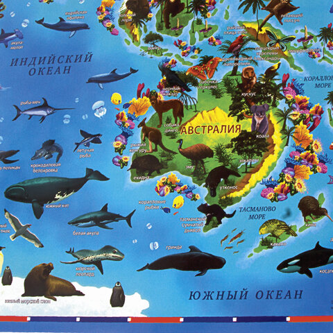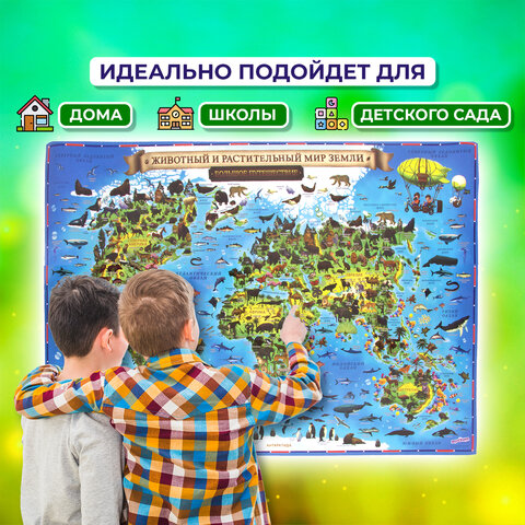 Интерактивная карта ЮНЛАНДИЯ с обозначениями самых распространенных животных и растений мира. Плотная бумага с двусторонней капсульной ламинацией устойчива к воздействию окружающей среды.