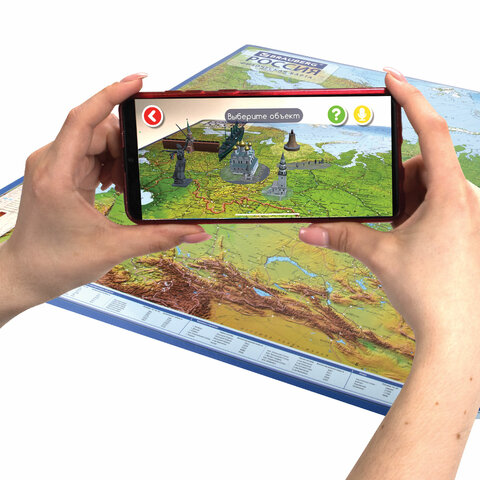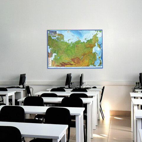 Карта России физическая 116х80 см, 1:7,5М, с ламинацией, интерактивная, европодвес, BRAUBERG, 112393