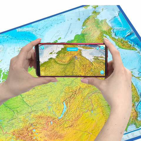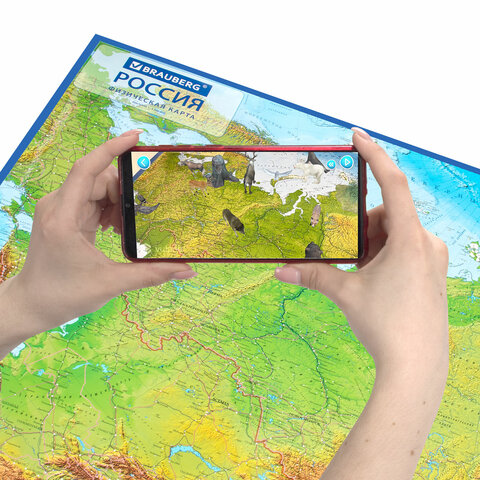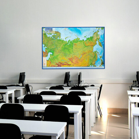 Карта России физическая 157х107 см, 1:5,5М, с ламинацией, интерактивная, европодвес, BRAUBERG, 112398
