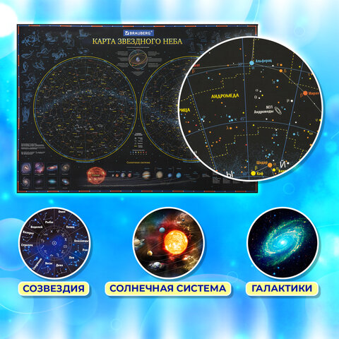 На карте звездного неба и планет BRAUBERG можно рассмотреть солнечную систему, далекие галактики и созвездия.