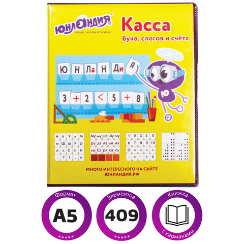 Касса букв, цифр и счёта ЮНЛАНДИЯ - отличное наглядное пособие для обучения чтению и счету в дошкольном образовании и начальных классах. Благодаря пособию ребенок научится читать, считать и решать простые арифметические задачи.
