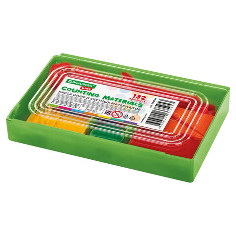 Касса цифр и счетных материалов 132 элемента, пенал в термоусадке, BRAUBERG KIDS, 106554