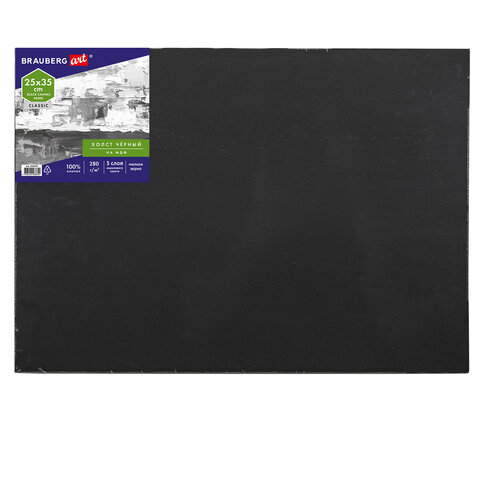 Холст черный на картоне (МДФ), 25х35 см, грунт, хлопок, мелкое зерно, BRAUBERG ART CLASSIC, 191678