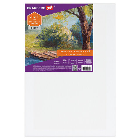 Холст на подрамнике BRAUBERG ART DEBUT, 20х30см, 280 г/м2, грунт, 100% хлопок, мелкое зерно, 191641