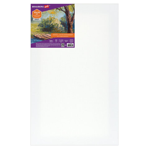 Холст на подрамнике BRAUBERG ART DEBUT, 30х50см, 280 г/м2, грунт, 100% хлопок, мелкое зерно, 191643