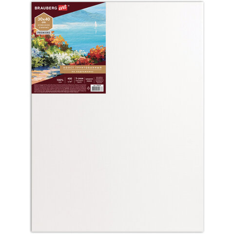 Холст на подрамнике BRAUBERG ART PREMIERE, 30х40см, грунтованный, 100% лен, среднее зерно, 190639