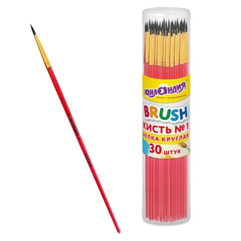Кисть БЕЛКА, круглая, № 1, цветная ручка, ЮНЛАНДИЯ, 201052