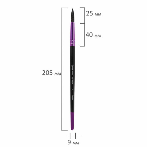 Кисть белка, круглая № 6, BRAUBERG PREMIUM, 200975