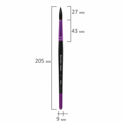 Кисть белка, круглая № 7, BRAUBERG PREMIUM, 200976