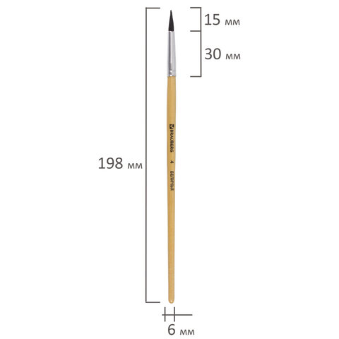 Кисть BRAUBERG № 4 подходит для работы с акварелью, гуашью, тушью, а также для прорисовывания различных деталей рисунка. Снабжена защитным пластиковым колпачком.