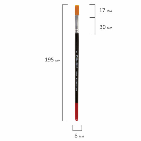 Кисть BRAUBERG синтетика, плоская, №8, 200869