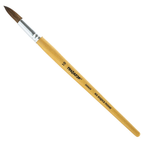 Кисть ПИФАГОР, ПОНИ, круглая, № 10, деревянная лакированная ручка, колпачок, пакет с подвесом, 200839