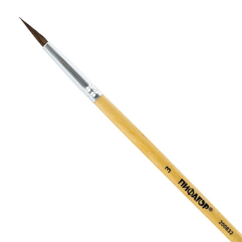 Кисть ПИФАГОР, ПОНИ, круглая, № 3, деревянная лакированная ручка, с колпачком, 200832