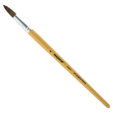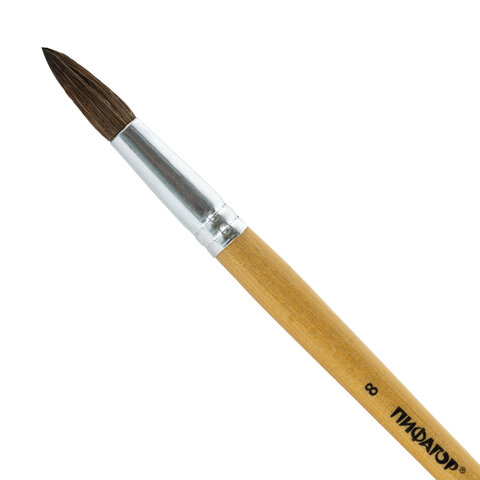 Кисть ПИФАГОР № 8 подходит для работы с акварелью, гуашью, тушью, а также для прорисовывания различных деталей рисунка. Снабжена защитным пластиковым колпачком.
