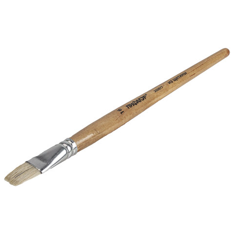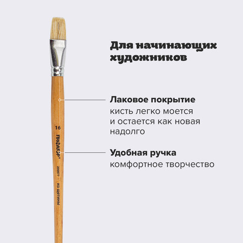 Кисть ПИФАГОР, ЩЕТИНА, плоская, № 16, деревянная лакированная ручка, пакет с подвесом, 200877