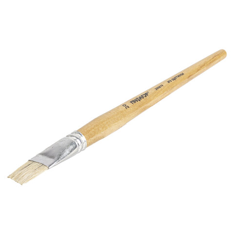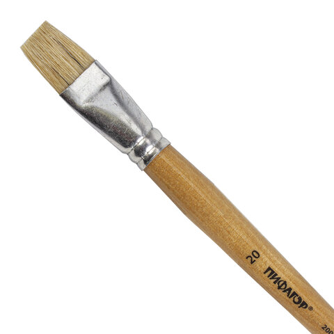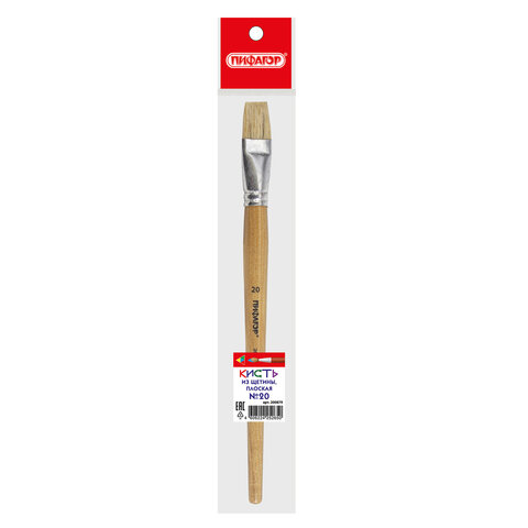 Кисть ПИФАГОР, ЩЕТИНА, плоская, № 20, деревянная лакированная ручка, пакет с подвесом, 200879