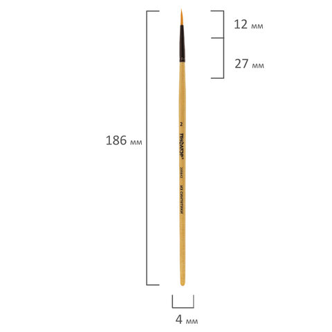 Кисть ПИФАГОР, СИНТЕТИКА, круглая, № 2, деревянная лакированная ручка, с колпачком, 200842