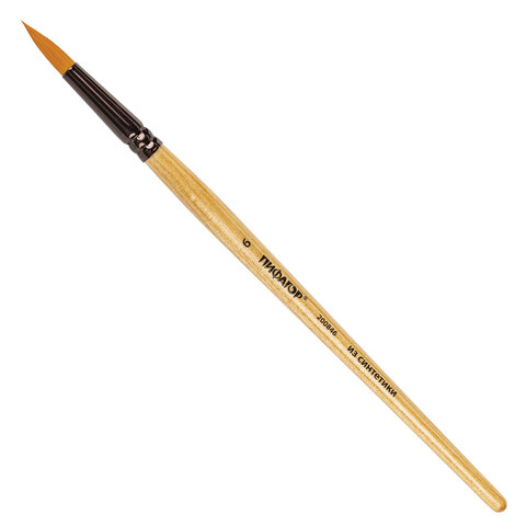 Кисть ПИФАГОР, СИНТЕТИКА, круглая, № 6, деревянная лакированная ручка, с колпачком, пакет с подвесом, 200846