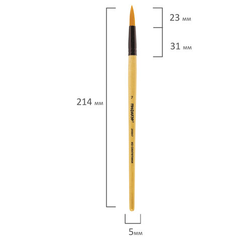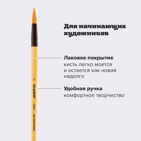 Кисть ПИФАГОР, СИНТЕТИКА, круглая, № 7, деревянная лакированная ручка, с колпачком, пакет с подвесом, 200847
