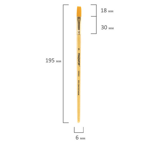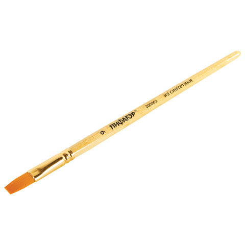 Кисть ПИФАГОР, СИНТЕТИКА, плоская, № 9, деревянная лакированная ручка, пакет с подвесом, 200862